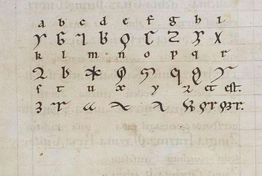 The Wiesbaden codex and Berlin MS are perhaps the only pieces of writing that contained descriptions of Lingua Ignota, making the name of the language very much fitting for a language this unknown. These texts were first collected by Sir Thomas Phillipps in the 19th century, and to date, fewer than 20 publications and literature exist documenting the constructed language. In the codices, the texts contained a glossary with glosses in Latin, and some in Middle German, making it relatively easy to obtain English translations of the texts. These writings used an alphabet called the Litterae Ignotae, a system of 23 letters with 2 special characters denoting special abbreviations.