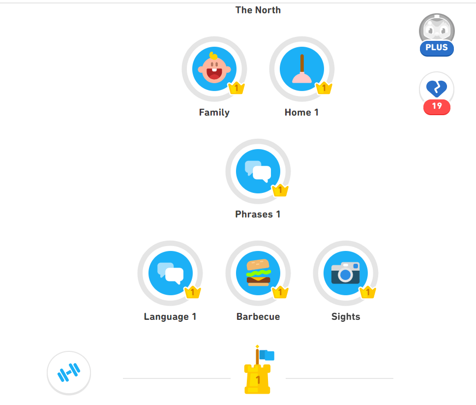 The skill tree leading up to the first checkpoint had 12 skills and the checkpoint test, totaling 44 exercises to do. These skills range from basic greetings to a topic curiously known as “barbecue”. So how long do you estimate this would take? 2 hours, thereabouts?