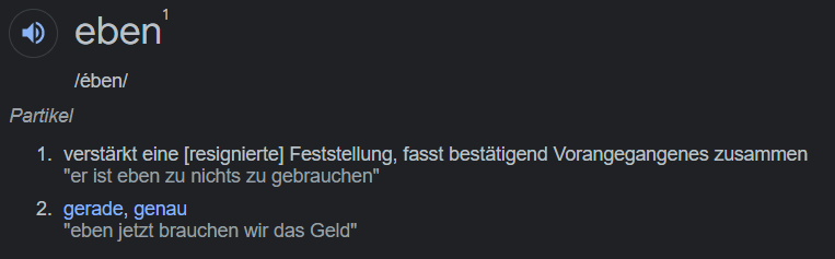 Especially, when one wants to understand the words “gerade“, “genau“, or “eben“, one should not look too much for 1-to-1 translations.