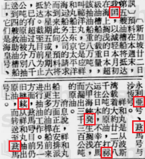 Examples of Singapore Simplified Chinese Characters, highlighted in red boxes, in a ๅ—ๆด‹ๅ•†ๆŠฅ (Nanyang Business Daily) article from 23 January, 1975. Throughout the article, characters consistent with traditional Chinese, and characters consistent with currently-used simplified Chinese are also visible. Image from NewspaperSG, an online archive of Singapore’s newspapers.