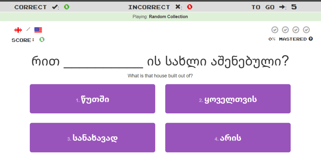 However, Clozemaster does not seem to apply this consistently in its multiple choice exercises. Sometimes, at least one of the options do not make any sense — these could be grammar particles, pronouns, or unrelated to the missing word in question. While Clozemaster is transparent on the method on selection of blanks, it is not so transparent when it comes to choosing words to be used as options for these exercises.